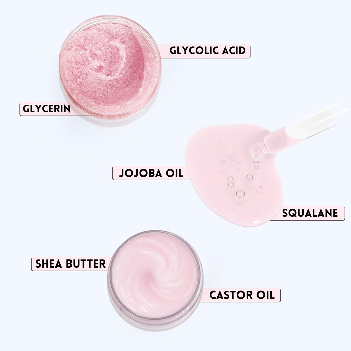 Turn your daily routine into a calming ritual with the Lavender Love Body Care Bundle — a 3-step routine featuring an exfoliating scrub, whipped body butter, and silky body oil. Infused with glycolic acid, niacinamide, squalane, and soothing lavender-based fragrance, this bundle smooths, hydrates, and wraps your skin in a spa-like scent that melts away stress.