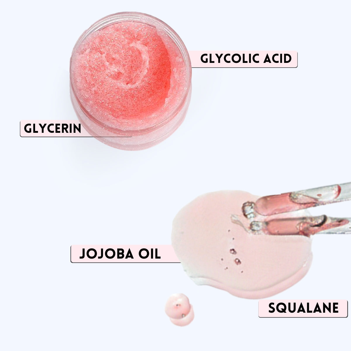 Refresh, smooth, and lock in a dewy glow. Start with the fruity sugar scrub to exfoliate and prep skin, then finish with the lightweight squalene oil to seal in hydration. Perfect for post-shave sheen or daily glow.